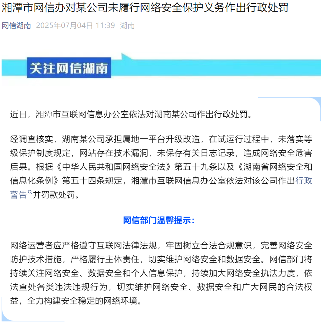[点晴永久免费OA]湖南某公司因承建某平台在试运行前未做等保被处罚