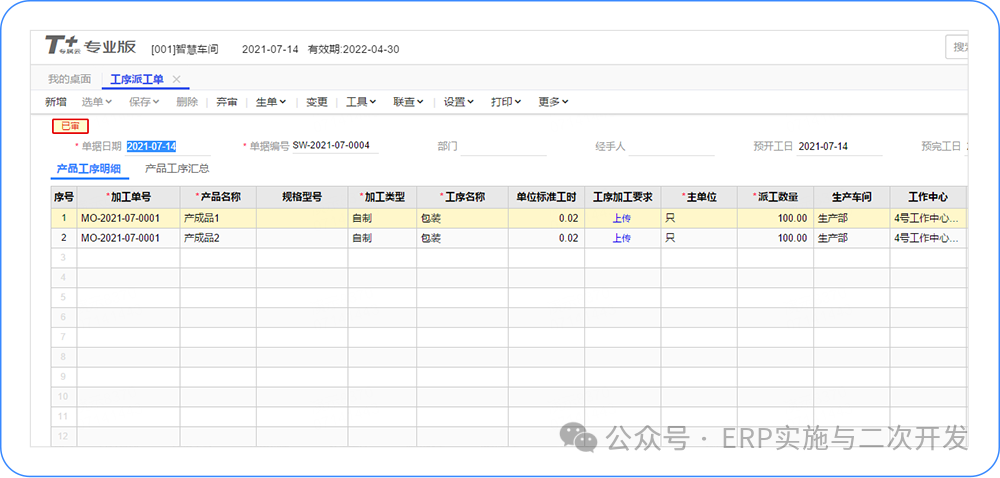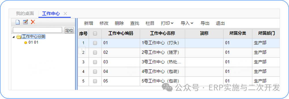 工作中心一般是独立完成一道工序的单元,可设置工作中心默认的班组、工人、设备等信息。可设置每小时的产量,产量用于计算工序派工的产能时使用。注意:如果要知道工序派工的能力,则必须要设置工作中心