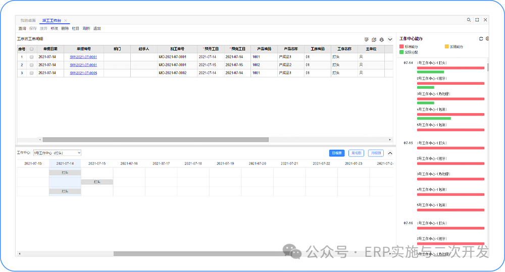 4支持派工工作台,通过列表+甘特图的形式展示已经安排的各工序的任务,方便调整和查看