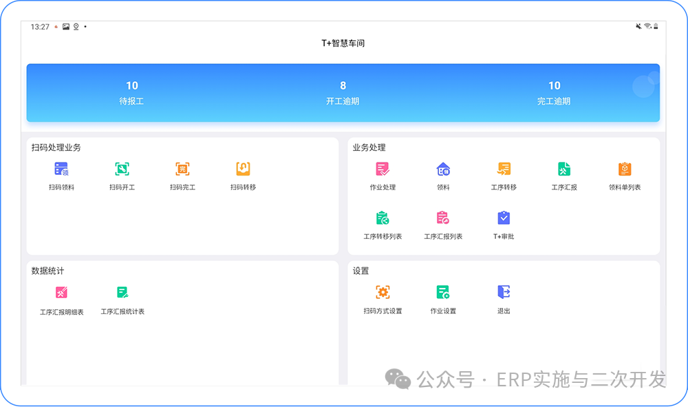 工人作业的工作台,可以显示工人待处理的任务、查看图纸、工艺要求,可以进行领料、开工、完工等业务处理,也可进行数据查询
