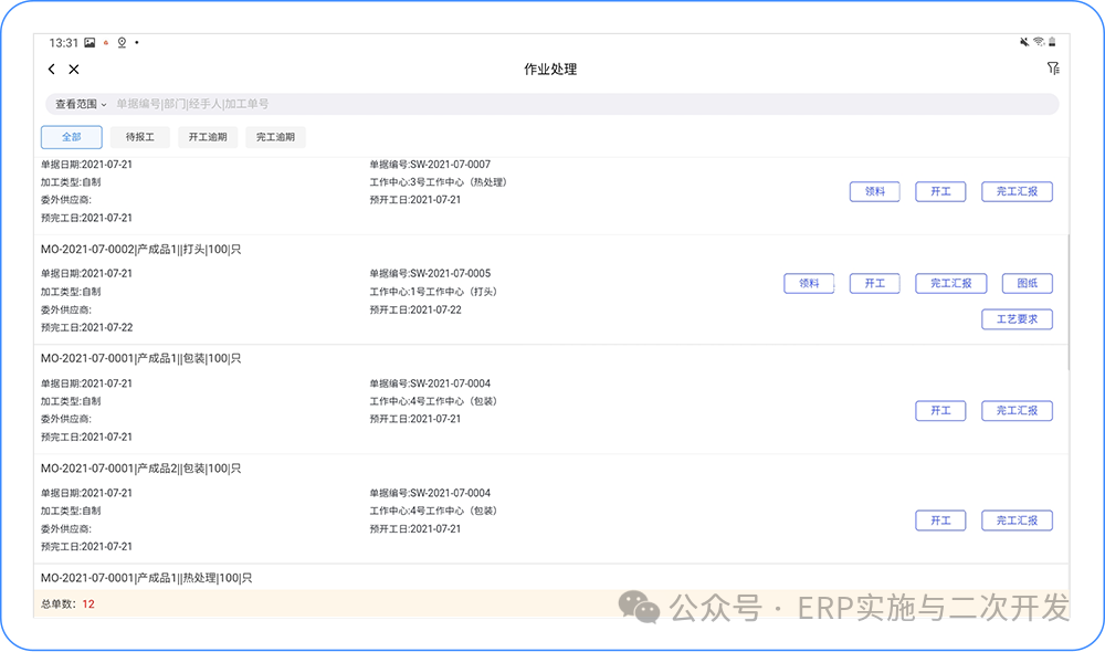 5支持工人作业工作台。可查看工人的作业任务、图纸、工艺要求等信息,并进行领料、开工、完工等业务处理