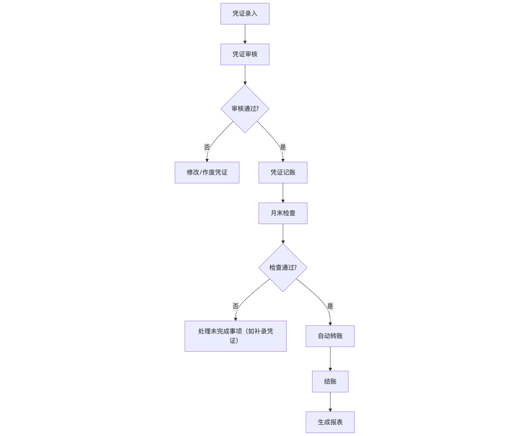 - 作废无效凭证(如重复录入)可标记为“作废”,作废凭证不参与记账,但保留痕迹(审计需要)。