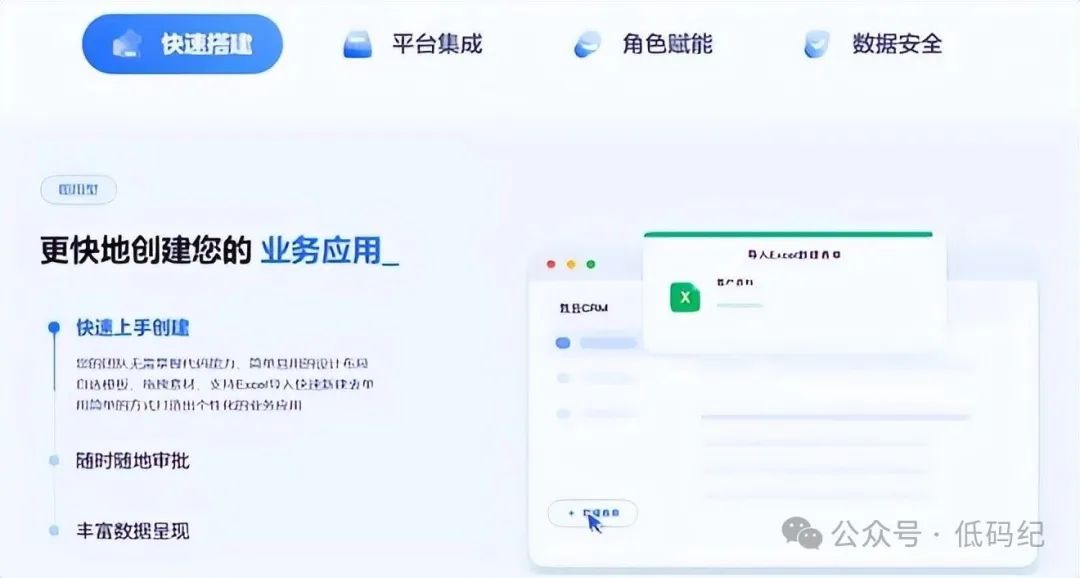2、宜搭 阿里旗下低代码平台,深度集成钉钉生态,聚焦OA审批、人事管理等轻量化应用开发,采用SaaS模式降低部署成本。 产品主要特点:
