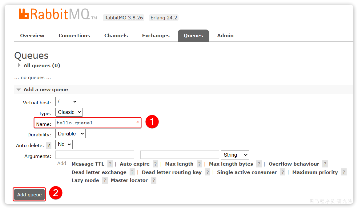 再以相同的方式,创建一个队列,密码为hello.queue2