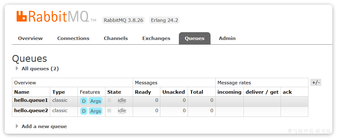 然后再次查看queues选项卡,会发现之前的队列已经看不到了:
