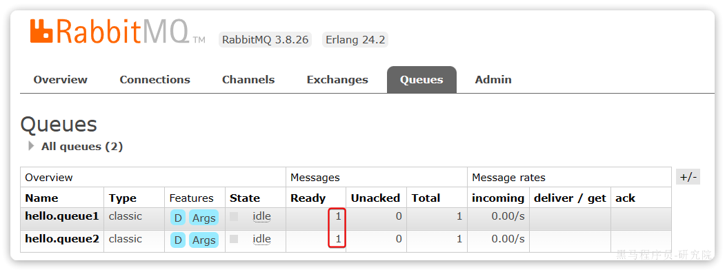这个时候如果有消费者监听了MQ的hello.queue1