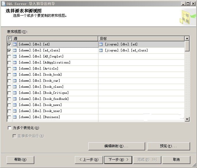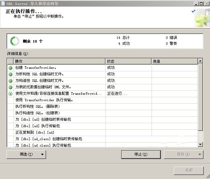 同时在选择表后,点击下面的“编辑映射”里,可以指定源表和目标表对应的字段,如果你有的字段不需要导入,那你只要在目标字段里选择“忽略”就可以了,选择好后,点“确定”,再点下一步。 6、在出现下面界面时,不要管,只要点“下一步”或“完成”,然后再点一次完成。 7、出现下图就说明已在导入数据了,等数据导入完成后,就OK了。 该文章在 2012/5/21 21:23:41 编辑过 |