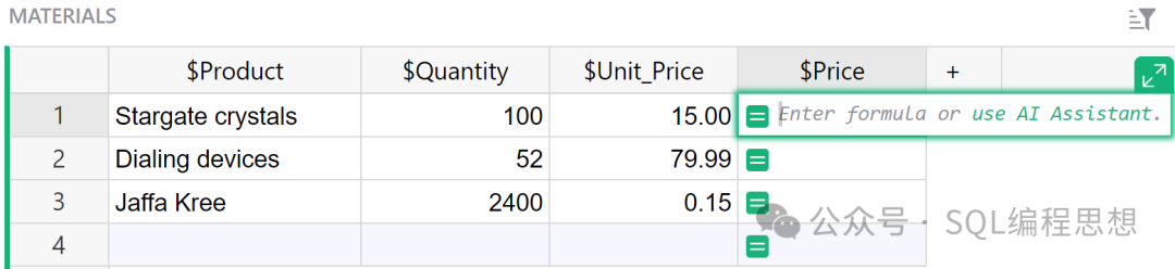 • • 强大的公式:支持使用 Python 代码和 Excel 函数定义公式,并且可以使用 AI 助手自动生成公式。