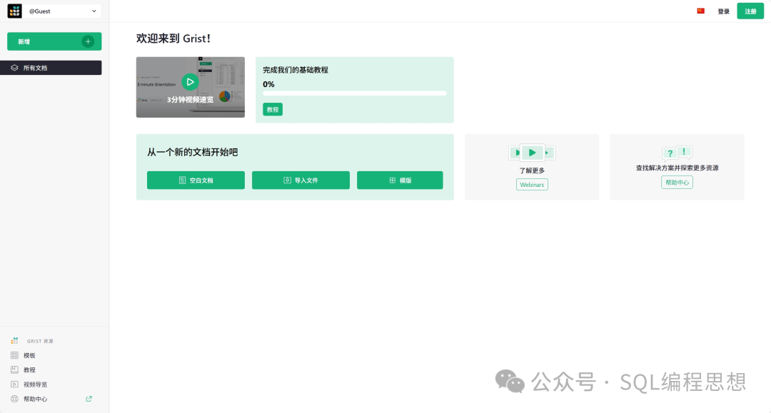 Grist 提供了在线快速体验环境,输入以下网址即可: