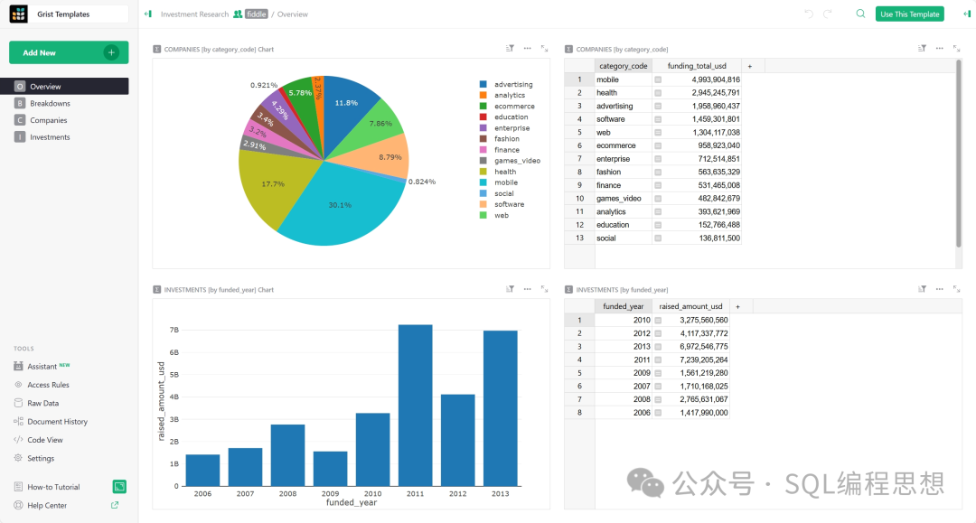 Grist 是一款创新的开源电子表格工具,巧妙融合了传统电子表格的灵活性与关系型数据库的强大性,支持复杂数据分析、数据可视化、自动化处理及团队协作等功能。