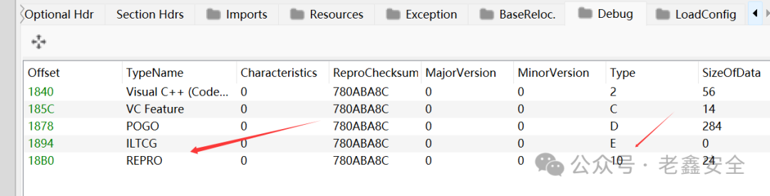 2. 2. 如果里面有 IMAGE_DEBUG_TYPE_REPRO(值为 0x16),那么大概率是可复现构建;