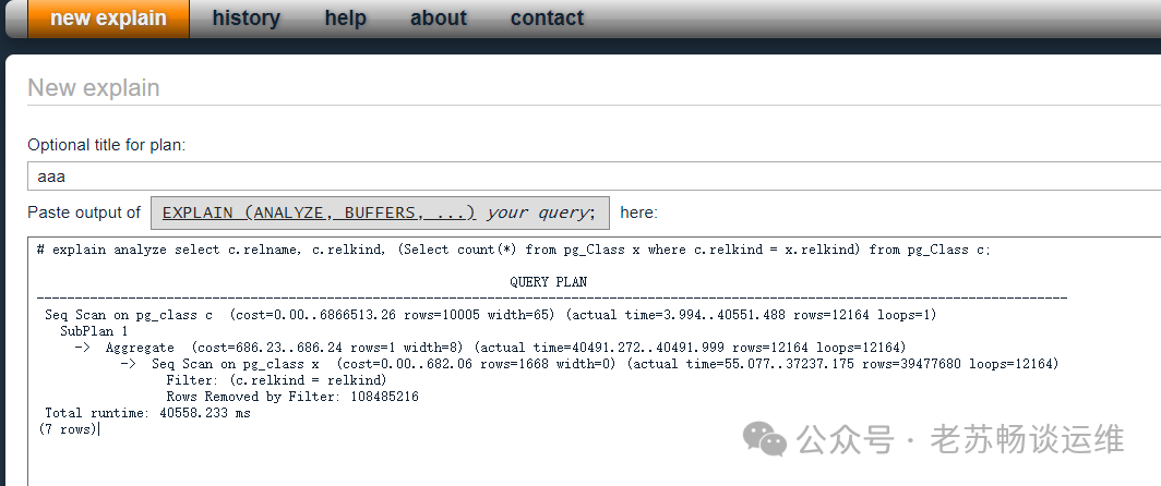 使用过Oracle的SQL Monitor的朋友都知道,它能够将复杂的SQL执行计划解析为直观的HTML可视化报告。清晰展示查询的执行路径、耗时分布及资源消耗,帮助开发者快速定位性能瓶颈,如表扫描、索引缺失、JOIN效率等问题。对于诊断慢SQL,该工具提供分析支持,大幅提升数据库调优效率。那对于PostgreSQL数据库,有没有类似的工具可以用来分析呢?答案是肯定的,那就是Depesz EXPLAIN ANALYZE visualizer,我们看一下它的使用方法。