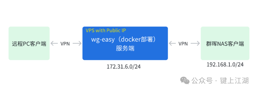 1. 1. wg-easy 作为 WireGuard 服务端,部署在 VPS 上或家带路由上(适合有公网IP条件的用户)。