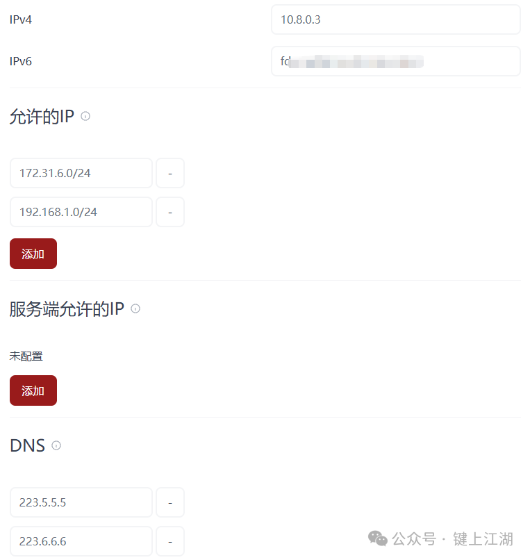 服务端允许的IP:代表服务端将哪些IP地址路由到客户端