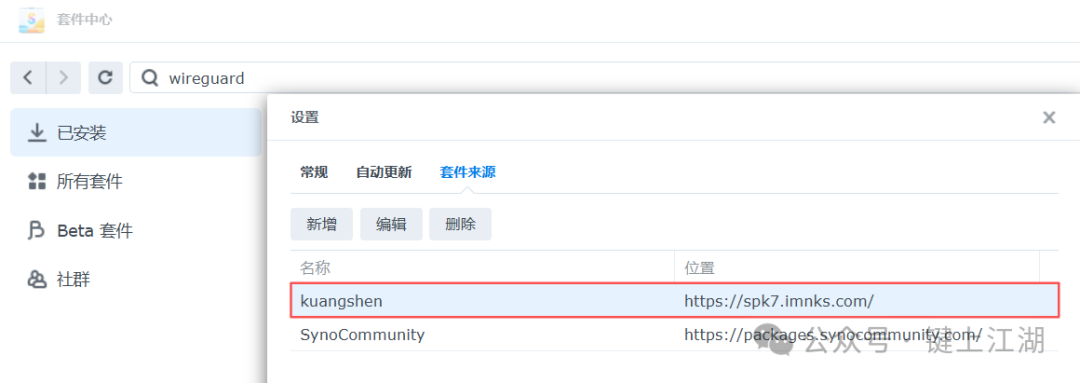 群晖系统默认不支持 WireGuard,需要安装依赖。