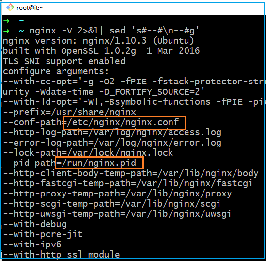 有时为了配置方便会将不同的 nginx 服务独立出来,在一台机器上启多个 nginx 实例。不同的 nginx 实例支持独立的配置文件,可以单独启停。比如默认的 nginx 是通过 systemctl 进行管理的,它默认的配置文件是在 /etc/nginx/ 目录。通过 nginx -V 可以查看它的编译选项,其中包含了默认配置文件位置,以及默认日志。nginx -V 2>&1| sed 's#--#\n--#g'