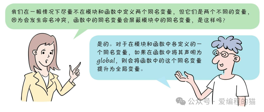 变量可以在模块中创建,作用域(变量的有效范围)是整个模块, 被称为全局变量。变量也可以在函数中创建,在默认情况下作用域是整 个函数,被称为局部变量。