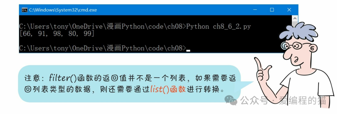 在Python中定义了一些用于数据处理的函数,如filter()和map( )等。我们先介绍filter()函数。