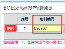 1.进入ERP系统之后,在左侧的功能菜单里找到“BOE定制”,点开“成品返退”,点击“新增返退品发产线出库”。