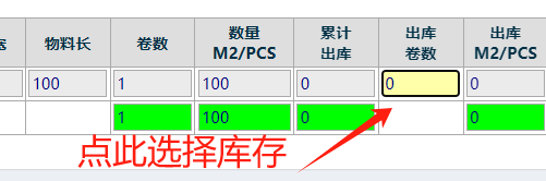 如果是卷料点击卷数,非卷料点击数量,在弹出的窗口选择库存出库