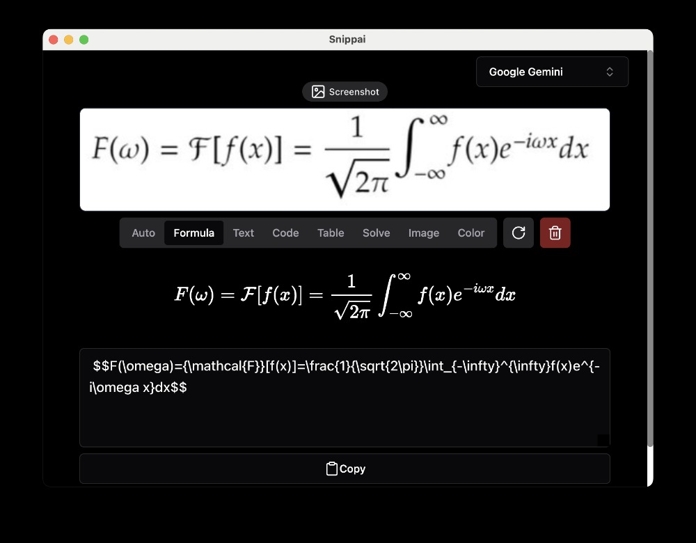 [点晴永久免费OA]Snippai:一款功能强大的智能截图工具,不仅能够识别图像中的公式和文本,还能表格转换、代码理解和语言翻译等