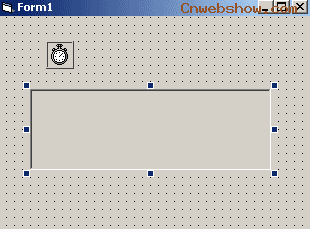 选中时钟控制器,将鼠标移到界面设计区,在窗体中拖出一个矩形就可以创建一个 Timer 控件了。跟其他控件不同的是,无论你绘制的矩形有多大,Timer 控件的大小都不会变,如图二: