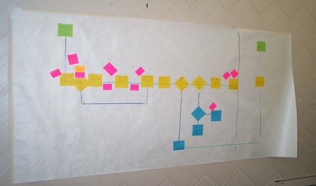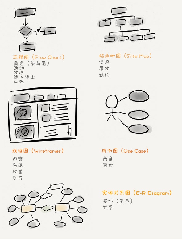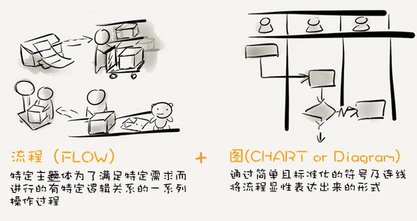 前言:近来一段时间,忙于整理业务流程图,期间,关于流程图的绘制方法和工具也与内部团队和外部做了心得交流,恰好,个人生活也牵涉在买房,婚礼,户口迁移等流程中。不知不觉,伴随着实践与反思,个人所得的系统知识趋于完整,今儿天气极好,坐在飘窗一隅,听着间或几声鸟鸣歌唱,偶尔瞥一眼窗外的遍地绿荫,真真觉得是个写点什么的日子。所以就整理成文,如果恰好对你有所帮助,那是真真好的。 真实整理的流程牵涉到公司未公布的计划,不好公开,所以在本文中会借助一个简单的案例替代(这个案例呢,也就是计划写本文前30分分钟才想到的,如有考虑不周,请各位见谅),但是仅传达概念和方法,倒也足够了。恩,甄環体告一段落,咱们开始吧。 ![]() 图1:用即时贴与白板做的简单流程图 本文会包含几块内容: 1. 什么是流程图?流程图和其他图表(如线框图,概念图,架构图,用例图)有什么不同? 2. 为什么需要流程图? 3. 流程图的分类? 4. 如何绘制流程图? 5. 流程图绘制工具 视篇幅情况,会在行文时略加划分为系列,敬请关注并多多交流。 第一部分:什么是流程图? 1. 定义 了解一个事情,我习惯从它的定义开始。至于为什么,可以参见我之前的博客文章:http://heidixie.blog.sohu.com/161709085.html 我们因为厌恶十年教育,厌恶背各种定理和定义,所以我发现生活中和工作中很多人都很讨厌给一个事情下定义以及去参考定义。所以你会发现很多人在一起争吵得不可开交,仔细去听,原来是鸡同鸭讲,根本不在一个频道上。对于一个事情的描述,没有一个共同的语言,没有所谓的术语。有定义很好办,你们共同引用一个定义,发现定义有问题,OK,去补充这个定义,并扩展到更多的人群。当然,任何事情过犹不及,我们相互提醒吧。 那什么是流程图呢?说文解字是一种了解定义的好方法。流程图=流程+图,如下图: ![]() 图2:流程图的定义 流程:Flow,是指特定主体为了满足特定需求而进行的有特定逻辑关系的一系列操作过程,流程是自然而然就存在的。但是它可以不规范,可以不固定,可以充满问题。所以就会造成看似没有流程。前不久,团队每个人对接一个业务团队去调研流程,反馈给我的流程有一些缺失。询问时,负责人反馈给我的答复是:这一块业务他们没有流程。其实严格意义上讲,业务已经开展,不可能没有流程,只是说没有固定的流程或者你调研的对象也讲不清楚。 图:Chart 或者 Diagram, 是将基本固化有一定规律的流程进行显性化和书面化,从而有利于传播与沉淀、流程重组参考。 从定义可以看出,只要有事情和任务,流程就会有,但是并不是所有的流程都适合用流程图的方式去表现,适合用流程图去表现的流程是一定程度固定的有规律可循的,流程中的关键环节不会朝令夕改的。 2. 流程图与其他图表的对比 工作中我们还用到或听到很多其他类型的图表,比如交互设计师们经常说的线框图(Wireframes),信息架构图或站点地图(Site Map),,开发工程师们经常说的用例图(Use Case)或E-R图。这些不同的图表要表达的内容有何种差异呢?简单做个对比,如图: ![]() 图3:流程图VS其他常用图表 如果要串到某一个项目来说,可以理解成: 用例图(Use Case):