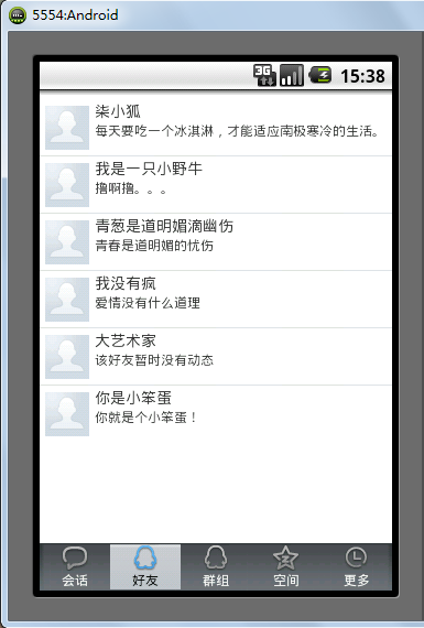 在得到好友列表后,显示到好友列表中就OK,listView 和adapter种种,就不详细说了,