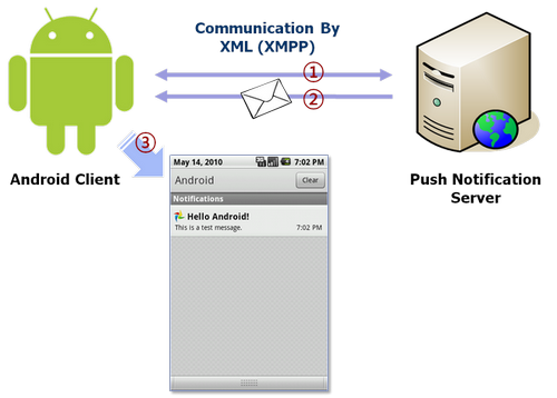 在 开发Android和iPhone应用程序时,我们往往需要从服务器不定的向手机客户端即时推送各种通知消息,iPhone上已经有了比较简单的和完美的 推送通知解决方案,可在Android平台上实现起来却相对比较麻烦,最近就对Android的推送通知服务进行初步的研究。 在Android手机平台上,Google提供了C2DM(Cloudto Device Messaging)服务,起初我就是准备采用这个服务来实现Android手机上的推送功能。 Android Cloud to Device Messaging (C2DM)是一个用来帮助开发者从服务器向Android应用程序发送数据的服务。该服务提供了一个简单的、轻量级的机制,允许服务器可以通知移动应用 程序直接与服务器进行通信,以便于从服务器获取应用程序更新和用户数据。C2DM服务负责处理诸如消息排队等事务并向运行于目标设备上的应用程序分发这些 消息。 但这个服务存在很大的问题: 1、C2DM内置于Android的2.2系统上,无法兼容老的1.5到2.1系统; 2、C2DM需要依赖于Google官方提供的C2DM服务器,由于国内的网络环境,这个服务经常不可用,如果想要很好的使用,我们的App Server必须也在国外。这个可能不是每个开发者或公司能实现的。 所以最终我放弃了这个方案。采用XMPP协议实现Android推送,事实上Google官方的C2DM服务器底层也是采用XMPP协议进行的封装。XMPP(可扩展通讯和表示协议)是基于可扩展标记语言(XML)的协议,它用于即时消息(IM)以及在线探测。这个协议可能最终允许因特网用户向因特网上的其他任何人发送即时消息。 androidpn是一个基于XMPP协议的java开源Android push notification实现。它包含了完整的客户端和服务器端。