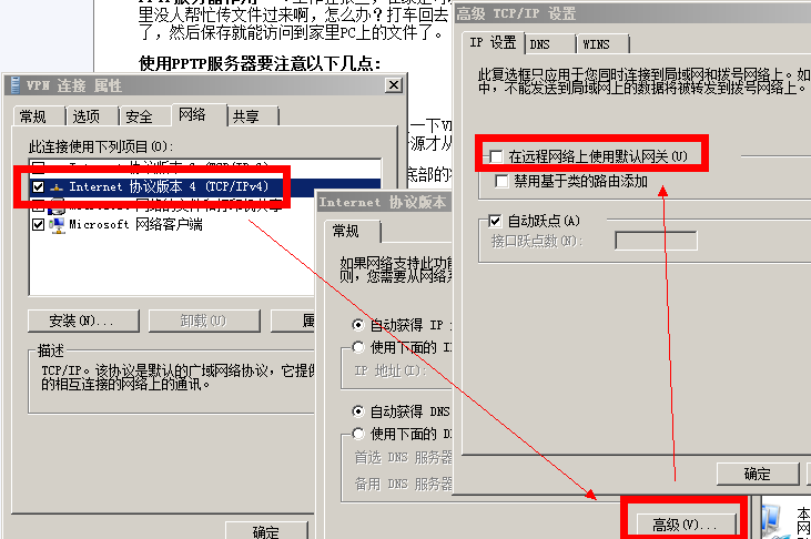 VPN设置--->PPTP服务器 PPTP服务器作用===>工作狂张三,在家是可以访问公司的资源了,某日到公司上班后发现昨天带回家处理的文件放在家里的PC上了,PC倒是开着,但是家里没人帮忙传文件过来啊,怎么办?打车回去?不!咱是搞挨踢的!刷的是Tomato DualWan!只需要在PPTP服务器上把家里的局域网IP和子网掩码填上就好了,然后保存就能访问到家里PC上的文件了。 使用PPTP服务器要注意以下几点: (1)不能打开DMZ功能 (2)如果使用Windows自带的客户端,设置一下VPN连接的属性->Internet协议->属性->高级,将“在远程网络上使用默认网关”的钩去掉,这样你上网的流量就还是从本地走,只有访问VPN网络的资源才从VPN线路走。 (3)高级设置→连接追踪/包过滤,翻到底部的将GRE / PPTP,的钩去掉 首先Tomato DualWan 的VPN(PPTP)分客户端和服务端,使得刷了该固件的路由器既可以做PPTP服务器让远程PPTP客户端拨进来,也可以作为PPTP客户端接入到远程的PPTP服务器中,不过不要尝试自己拨自己啊,那样很无聊的 上图中,VPN本地IP、VPN客户端IP段用于跟VPN客户端组成一个VPN网络,其中VPN本地IP是给VPN服务器的,VPN客户端IP段是分配给客户端的。 MS DNS1、MS DNS2是给Windows VPN客户端使用的,如果指定了这2个值,那么当Windows通过VPN接入到Tomato DualWan的PPTP服务器时,Windows将自动将这2个DNS设置为客户端PC的DNS服务。如果不想设置这两个值,则输入0.0.0.0就可以。 MTU、MRT一般保持默认1450就可以。 PPTP用户列表是允许接入到PPTP服务器中的用户清单,用户名密码我就不废话了。其中VPN IP Address是客户端的VPN进来后分配给它的IP,如果输入*则从上面的VPN客户端IP段里动态分配,否则分配给客户端指定的IP。客户端办公网络、子网掩码分别是客户端那边的局域网的IP和掩码,如果PPTP服务器中没有输入客户端办公网络和子网掩码,那么就只有拓扑图中蓝色虚线的访问路径。如果在PPTP服务器中设置了客户端办公网络和子网掩码,那么就会有拓扑图中蓝色和红色虚线表示的访问路径。如果出现做了设置,但是还是无法访问的问题,那么一般是被某端的防火墙(路由器、PC等)阻止掉了。简单拓扑图如下 注意: 用PPTP VPN需要3个网段: PPTP客户端常见错误及解决办法 1. VPN客户端拨入时出现721错误 该文章在 2014/3/4 23:24:12 编辑过 |