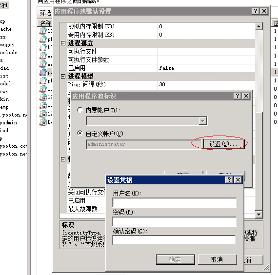 百度许久 自己在应用程序中 重置了用户的密码成功解决 可能原因是应用程序池建立后 用户修改了密码 而这边没有更新