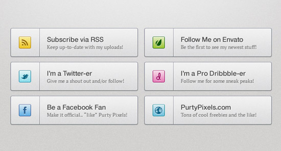 按钮在任何网页设计中都是最广泛使用的元素。按钮被用于各种目的,如下载按钮,电子邮件,留言形式,捐赠按钮,社交按钮,和许多其他用途。如果你使用预先设计的高品质的PSD网页按钮的话,就可以节省大量的宝贵时间。 PSD按钮的另一个好处是,你可以根据需要自定义按钮,您还可以学习如何创建新的按钮。