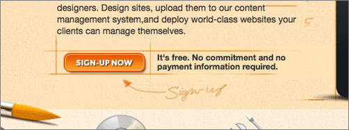 3、文字表达 在按钮上使用什么文字表达给用户是非常重要的。它应当简短并切中要点(不罗嗦),并以动词开始,如:注册、下载、创建、尝试等… 如果想切实的达到”勾引”用户点击的按钮,添加”免费”二字的确可以起到诱惑的效果,当然那要真的是免费,不要误导或欺骗用户。