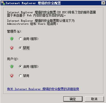 服务器管理/安全信息/配置IE ESC/对管理员或用户设置是否启用IE增强配置。