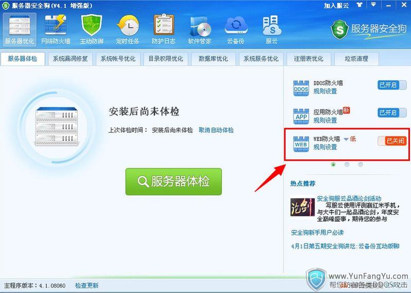 二、如果是window系统并且安装了[服务器安全狗],请把[WEB防火墙]关闭,如下图: