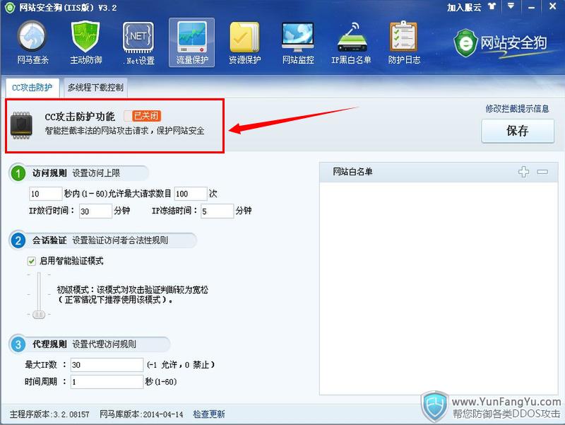 三、如果是window系统并且安装了[网站安全狗],请进入到[流量保护]中把[CC攻击防护功能]关闭;然后进入到[主动防御]里的[网马防护]中,不勾选[检测Get,Post之外的请求];如下图:
