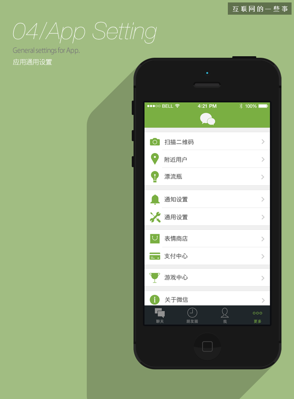 标签导航位于页面底部,通常包含5个标签是比较合适的数量。这种导航是非常常见的,如果你的应用需要用户频繁的在不同分页切换,可以采用这种导航。它的缺点是会占用一定高度的空间。如微信最新版的APP界面设计图。