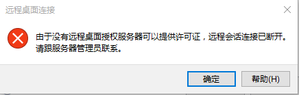 由于没有远程桌面授权服务器可以提供许可证,远程回话被中断,如何解决?