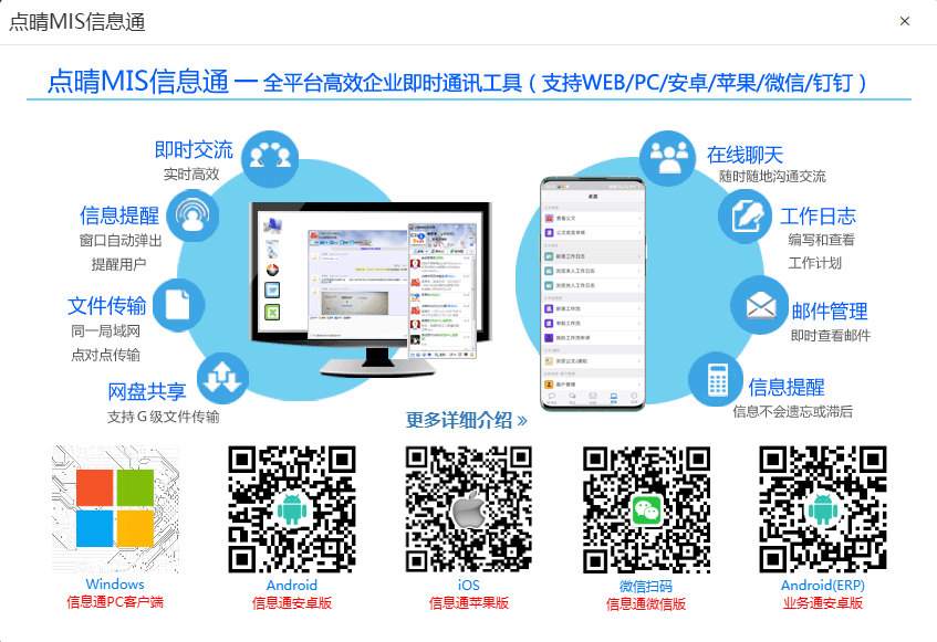点晴MIS信息通手机APP或PC客户端下载地址如下: